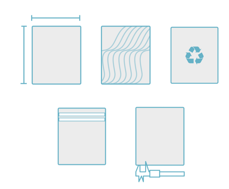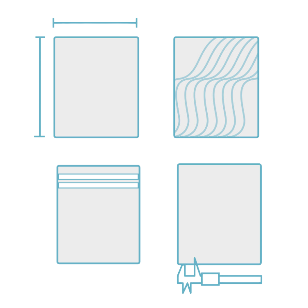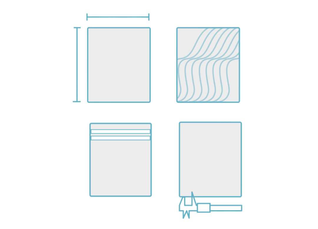 - Closure Type: Select from permanent adhesive, resealable adhesive, slide zipper or a ziplock (press-seal) closure.
